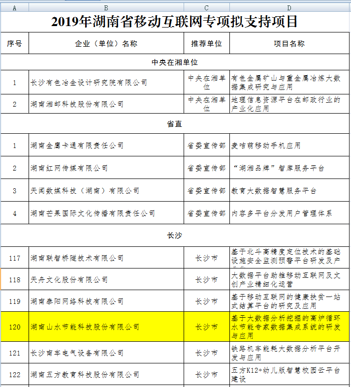 如今山水節(jié)能已步入高速發(fā)展軌道,以全球化的視野整合資源,履行“以卓越的技術(shù)和服務(wù)參與建設(shè)更美好的世界”的使命,不斷推動(dòng)節(jié)能減排事業(yè),為用戶提供從能源分析、可行性方案設(shè)計(jì)、節(jié)能改造到智慧能源管理的一站式能源項(xiàng)目管理服務(wù),通過科學(xué)管理、技術(shù)進(jìn)步為客戶節(jié)約能源、降低成本,為企業(yè)和社會可持續(xù)發(fā)展創(chuàng)造價(jià)值! 7月30日,根據(jù)《湖南省移動(dòng)互聯(lián)網(wǎng)產(chǎn)業(yè)發(fā)展專項(xiàng)資金管理暫行辦法》和省工信廳、省財(cái)政廳《關(guān)于做好2019年湖南省移動(dòng)互聯(lián)網(wǎng)產(chǎn)業(yè)發(fā)展專項(xiàng)資金項(xiàng)目申報(bào)工作的通知》,經(jīng)項(xiàng)目單位申請,市州和財(cái)政省直管縣市工信部門、財(cái)政部門聯(lián)合審查推薦,項(xiàng)目資料初審及專家評審等程序,省工信廳會同省財(cái)政廳研究提出建議方案并報(bào)省人民政府審定,2019年湖南省移動(dòng)互聯(lián)網(wǎng)產(chǎn)業(yè)發(fā)展專項(xiàng)資金擬支持項(xiàng)目公示中湖南山水節(jié)能科技股份有限公司獲“基于大數(shù)據(jù)分析挖掘的高爐循環(huán)水節(jié)能專家數(shù)據(jù)集成系統(tǒng)的研發(fā)與應(yīng)用”專項(xiàng)資金的支持。