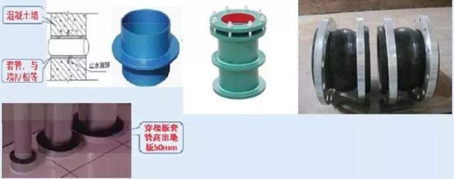 4 、消防水泵出水管道穿越外墻時,應采用防水套管;當穿越墻體和樓板時,應加設套管,套管長度≥墻體厚度,或應高出樓面或地面50mm;套管與管道間隙應采用不燃材料填塞,管道的接口不應位于套管內;