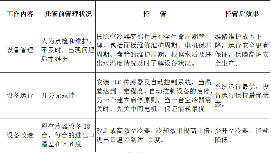 通過托管項目執行,該項目爐前循環水設備噸鐵成本由原來的13元降低到9.99元,年節約成本近1000萬元。