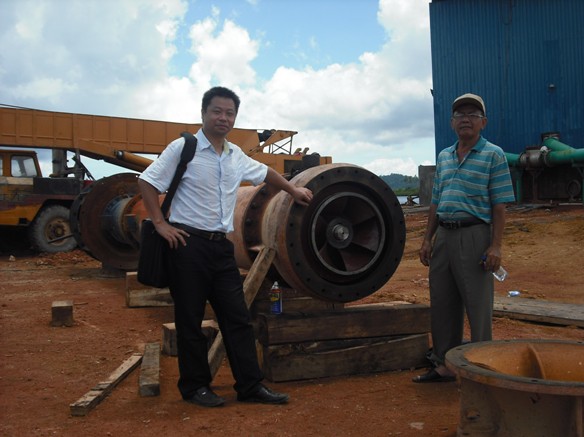 該泵應用于印度尼西亞賓當島電廠,因客戶選型失誤,水泵不能滿足現(xiàn)場工況要求,印度尼西亞當地維修人員曾去現(xiàn)場維修過幾次,始終未能將故障解決。客戶萬分著急,希望我司能派遣服務工程師到印度尼西亞協(xié)助用戶解決故障。客服總監(jiān)潘建創(chuàng)得知這一情況后,立刻準備出境事宜,奔赴現(xiàn)場。